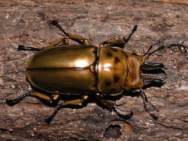 | 09_30 | 最近、持病の腰痛がひどくて病院に行って来ました…20歳の頃、椎間板ヘルニアで3ケ月ほど入院して、若いウチは手術で軟骨を切除してもスグに元に戻ってしまうらしく30くらいになったら手術しようと病院の先生に言われていたんですが、その後あんまり痛くなく平気だったし手術は恐いので放置していたのですが、40を目前に激痛が…(;x; 多分、今年の夏に普通種があんまりに採れ無かったので調子こいて高山種を採集しようと山歩きばっかりして無理がたたったのかな?と、反省中です。 でも、知り合いの方に連れていって頂いたヒメオオ採集は、メチャクチャ楽しかったし極太顎のヒメオオばっかり採集出来たのは嬉しい驚きでした!50oUpのヒメオオも頂いちゃってホクホクなのですが、産卵セットの♀は一向に産卵してくれません…ヒメオオは難しいです。 現在、我が家ではエラフス・ホソアカの飼育下における長寿記録をのばしてます! 毎回、長く生きても2ケ月くらいしか生きてなかったのに、今年は既に4ケ月を超してます♪この調子で年内生きててくれればホソアカの飼育環境に自信が持てるところです。 しかし、写真に撮るとグリーンメタの綺麗なボディーもカッパーになってしまう…撮影技術の無さに困り果ててます…顎がグリーンだと体はカッパー…体がグリーンだと顎がカッパー…どうしたモンかなぁ〜 キクロの写真が上手い人って尊敬してしまう!(><)/ 画像 : エラフス・ホソアカ82o♂ (グリーンタイプ) |