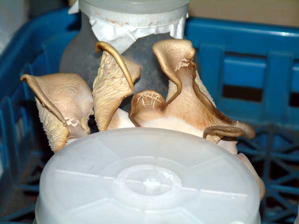 画像 : オオヒラタケが生えてきたPPボトル