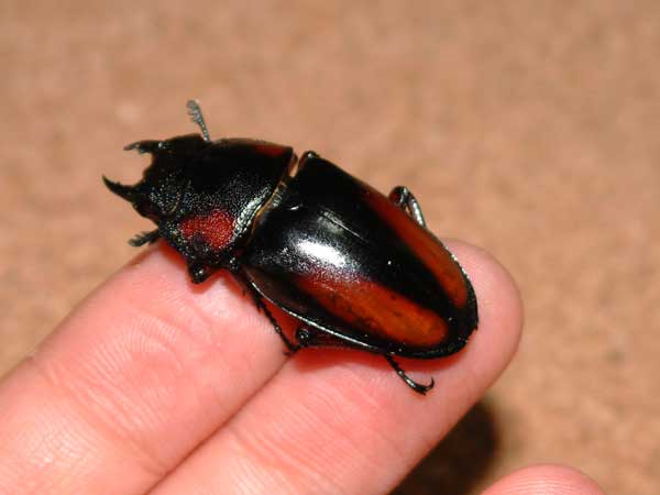 通常、ノコギリの♀は地味で小さいモノが多いですがミラビリスは♀も、かなり派手なカラーリングです(笑)結構大きいですのでカラーリングからも頭を隠してしまえばどことなく、スペキオススシカに見えないこともない…って、云うかほとんどカラーリングが同じではないのでしょうか??現在、産卵を確認しましたので、とっても楽しみです♪