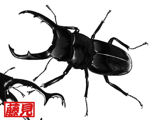コクワガタ。 コレも、鍬道の連載前にクワガタの練習をしたときのモノです。 幼なじみがブリードにて作出した53oのコクワを見て描きました!!いくらコクワと言っても 50oを超してくると大迫力です!幼なじみは“コクワ・シェンクリング計画”なるものを実行して いる最中で、ソレを見たときから60oUpのコクワが作出される日は近いなと感じています。 風の噂では、最近55oUpの作出に成功したらしいですので早くみたいモノです。(^^)