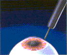 膜上皮を剥がした後、角膜の中心部へエキシマレーザーを照射し、ごく少量の角膜組織を取り除き角膜の形状を平坦化させる術法です。